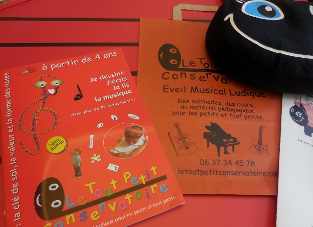 J’ai reçu un exemplaire de ce sac que j’ai laissé sur la table du salon. Mon Lutin l’a ouvert et a commencé à lancer les notes en l’air, comme il le fait avec n’importe quelle peluche. Une fois que l’excitation première est un peu retombée, je lui ai expliqué la différence entre la ronde (4 temps), la blanche (2 temps) et la noire (1 temps). Il a tout rangé dans le sac. Le lendemain, il était capable d’identifier ces trois notes quand je lui ai demandé de me les montrer. J’étais fière.