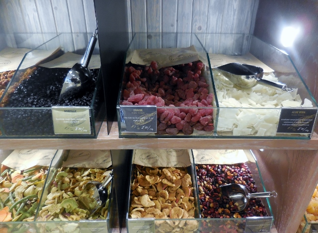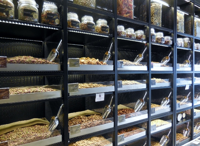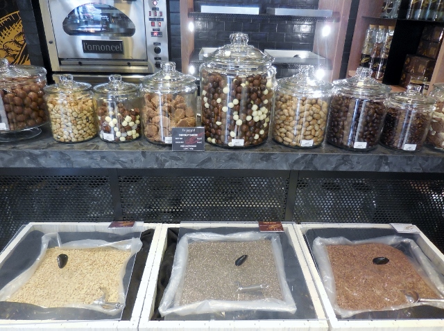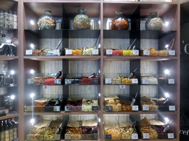 Outre cette splendide décoration, la boutique rassemble une incroyable variété de fruits secs ou séchés, chocolats, café, thés… Je ne savais plus où donner de la tête. Chaque produit chez Amoncel semble inviter à une aventure gustative unique.
