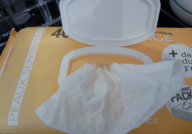 Et puis on m’a donnée des lingettes démaquillantes à l’huile d’amande douce peaux sensibles, que j’ai vite oubliées dans un coin du placard de la salle de bain. Allez savoir comment je suis tombée dessus l’autre jour, et surtout, ce qui m’a poussée à ouvrir le paquet. Toujours est-il que j’ai été bien inspirée, car le produit est désormais adopté. Le parfum, la texture de la lingette et surtout l’efficacité du nettoyage. J’ai enfin trouvé lingette à mes yeux et à mes lèvres. Cela ne m’empêche pas terminer par un nettoyage à l’eau (qui est une habitude), mais je n’éprouve jamais cette sensation qui me dérange tant d’avoir un “produit qui est resté sur le visage”.