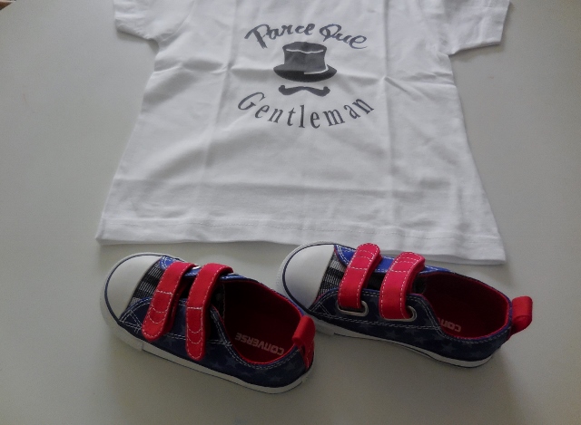 Il suffit de quelques rayons de soleil pour que Mon Héros et moi-même réalisions que Notre Lutin ne possède pas un seul vêtement de demi-saison, un mode de garde-robe auquel nous devons nous adapter. Dans notre empressement à vouloir bien faire, nous avons choisi des tenues un peu trop estivales…. Peu importe! En avril ne te découvre pas d’un fil, alors Notre Lutin attendra pour étrenner sa nouvelle garde-robe dans le mode approprié à la saison.