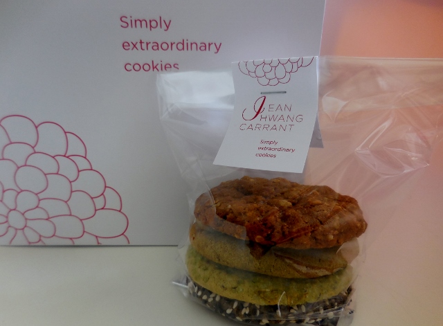 Quelle est la particularité de la toute petite boutique Jean Hwang Carrant, rue d’Aboukir ? C’est le seul établissement de cookies de la capitale, tenu par une américaine, qui confectionne ses biscuits maison. Rien que ça, c’est déjà un gage de qualité en soi, il me semble.