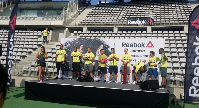 Je suis arrivée pendant l’échauffement animé par les coachs Reebok et Fitness Academy. L’ambiance était festive, avec de la musique et des participantes motivées.