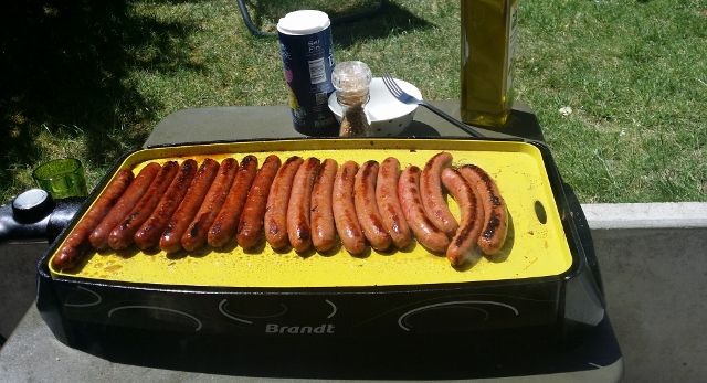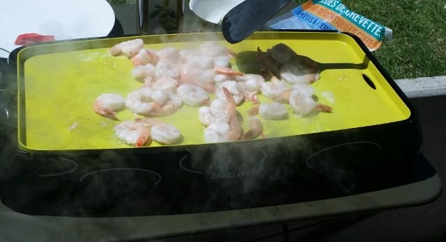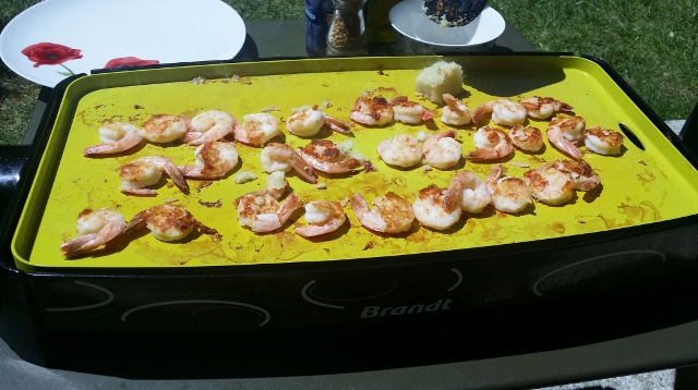 A première vue, le format de la nouvelle plancha Brandt se prête plus à une utilisation en intérieur. Que nenni ! Installée sur une table d’appoint, elle a joué son rôle à la perfection, d’autant que sa couleur végétale se fond dans le paysage. Nous avons donc enchaîné mini-brochettes le samedi… Crevettes (à l’ail et à l’huile d’olive) et merguez le dimanche… Outre une cuisson à la perfection, le nettoyage est encore plus facile que celui du barbecue électrique classique : la plaque n’adhère pas et se lave en quelques minutes.