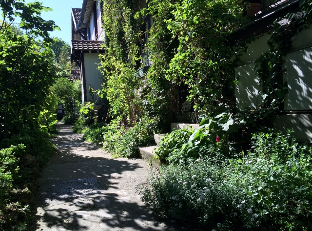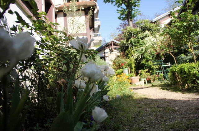 Comment y entrer lorsqu’on est accueilli par une grille imposante ? Hé oui, la cité Fleurie est une propriété privée. Derrière la grille, on aperçoit les maisons en colombages mais aussi l’aspect “fleuri” du lieu. Avouez que c’est frustrant de voir un endroit aussi charmant sans pouvoir y accéder ! Privé, certes, mais l’esprit “artiste” du lieu subsiste. En effet, les habitants sont très aimables et n’hésitent pas à vous faciliter l’accès dès lors que tout est demandé avec gentillesse et sourire. J’ai même eu droit à une visite accompagnée.