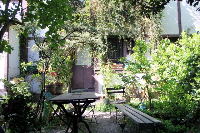 La partie la plus époustouflante est celle qui se situe après le grand porche. Les maisons se partagent un immense jardin très fleuri. Pour le coup, la cité porte bien son nom. Une fois que l’on se trouve dans cette partie, on ne se sent plus du tout dans la capitale tant le calme est impressionnant et la verdure si abondante. Tout au fond de la cour se trouve des vestiges des œuvres des artistes d’antan. Ouvrez bien les yeux sur chaque appartement parce que les artistes y ont laissé quelques signatures sympathiques.