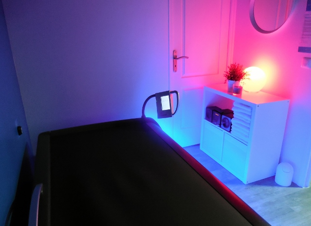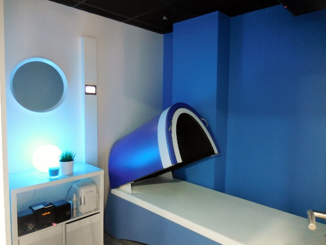J’ai personnellement testé le lit hydromassant, que je conseille à toutes personne désireuse de profiter des bienfaits du massage, mais qui ne supportent pas qu’on les manipule (j’ai des copines comme ça). Cette solution permet un massage totalement habillé, que l’on peut personnaliser. Des jets d’une eau à 34°c remplacent le masseur. Il suffit de régler leur puissance selon un menu de 60 programmes (intégral, épaules, bassin, jambes, corps…). On choisi sa durée au départ, mais on peut régler l’intensité du massage pendant de soin. Mon massage intégral de 30 minutes m’a procuré beaucoup de détente et je prévois une nouvelle séance, certainement couplée avec une séance de sauna. Là encore, le prix comment à 16€ les 15 minutes.