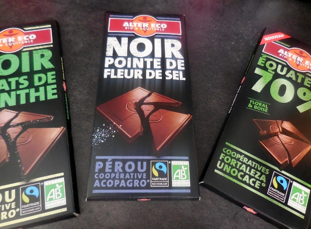 Gourmande et exigeante, je porte une grande attention aux aliments que je mange. Je fais partie de ces personnes qui lisent les étiquettes des produits (du coup j’en repose beaucoup dans les rayons) et je privilégie dans la mesure du possible le fait-maison. Cela est encore plus vrai pour mon fils. J’évite les plats trop gras et trop sucrés, et je lui donne essentiellement des produits bio. N’ayant pas de préférence, je prends souvent les marques distributeurs bio (souvent moins chères et aussi bonnes). J’ai pourtant eu un récent gros coup de coeur pour la marque Alter Eco qui présente un double intérêt : ses produits sont bio et équitables.