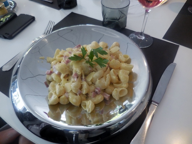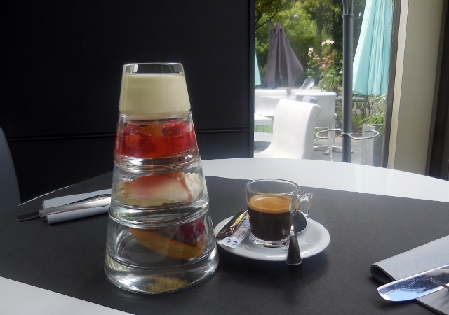 Une fois n’est pas coutume, j’ai accompagné mon déjeuner d’un verre de vin rouge (même avec le poisson, je préfère le vin rouge). Difficile de se tromper quant à la qualité, puisque la carte est réalisée en collaboration avec une jeune femme Echanson d’Or (spécialiste du vin) qui officie dans l’hôtel.