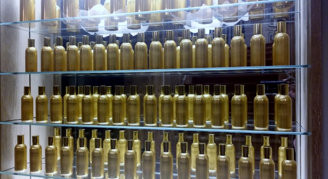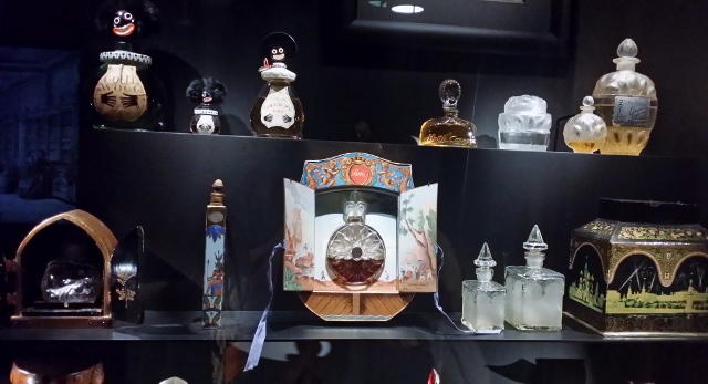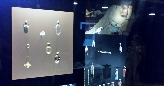 En sortant de la boutique Fragonard, j’ai marché quelques pas en direction du square de l’Opéra Louis Jouvet, pour me rendre dans le nouveau Musée du Parfum. Je connaissais déjà le Musée Fragonard de la rue Scribe, que j’avais visité à l’occasion de mon atelier parfumeur. Là-bas, j’avais pu admirer quelques-un des objets anciens liés à l’univers du parfum, provenant de l’impressionnante collection de Jean-François Costa (père des actuelles dirigeantes de la Maison de parfum). Le nouveau musée est original, car il rassemble non seulement plusieurs centaines d’objets liés à cet univers, mais aussi des images d’archives, des films, des tableaux qui présentent toutes des étapes de fabrication du parfum.
