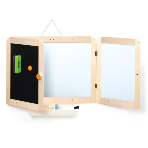 - Le Tableau mural (39,99 €) : il offre deux tableaux noirs et trois tableaux blancs, pour un encombrement minimal. Nous espérons ainsi ne plus avoir d’incident d’écriture sur les murs…