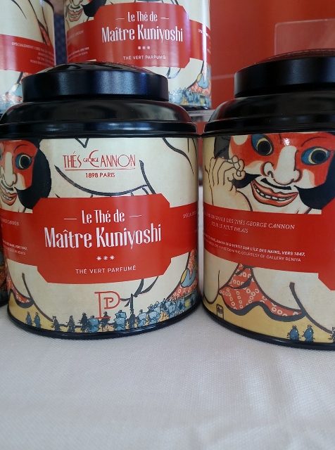 Quant au “Thé de Maître Kuniyoshi”, j’ai pu en déguster une petite tasse avant d’entrer dans la salle d’exposition. Il s’agit d’un thé vert Sencha avec des notes de poire et de coing. Un délice à se procurer tant pour le breuvage que pour la magnifique boîte. Cette création est vendue au prix de 15€ pendant toute la durée de l’exposition au Petit Palais, ainsi qu’à la boutique L’Essence du Thé des Thés George Cannon (12 rue Notre Dame des Champs 75006).