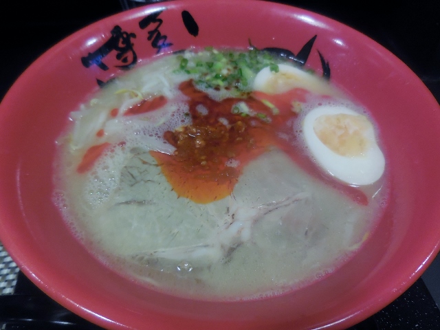 D’habitude, je me contente uniquement d’un grand bol de ramen pour un repas complet. Cependant, j’ai vu en parcourant la carte que leur gyoza a remporté le premier prix du concours de meilleur gyoza du Japon. J’ai donc ajouté une portion de raviolis à ma commande de Tonkotsu Ramen Rouge avec oeuf (et sauce miso piquante).