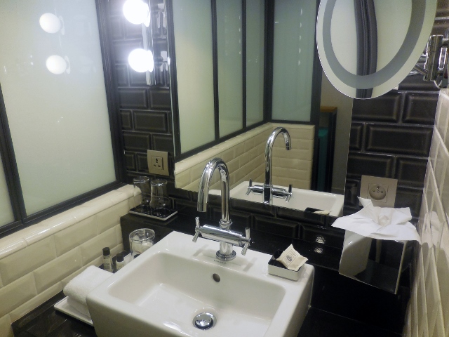 La salle de bain de star (avec les carrelages en faïence du métro parisien), propose des produits d’accueil de qualité…