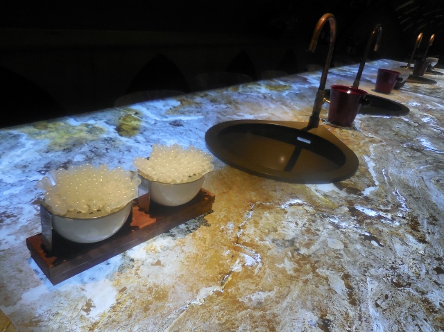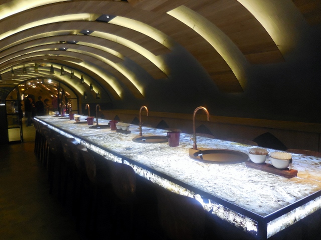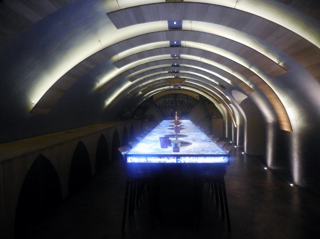Le goût (salle 3) : dans cette pièce en forme de tonneau, autour d’une table de 7 mètres de long, tous les goûts sont permis et explorés à travers les saveurs primaires à découvrir (analyse du processus du goût, présentation des différents cépages, des différents types de vin…).