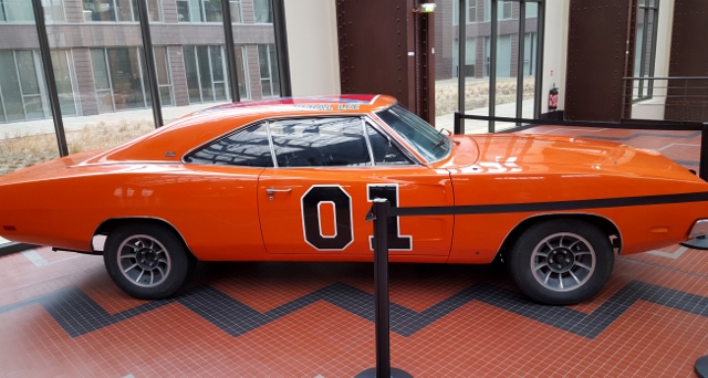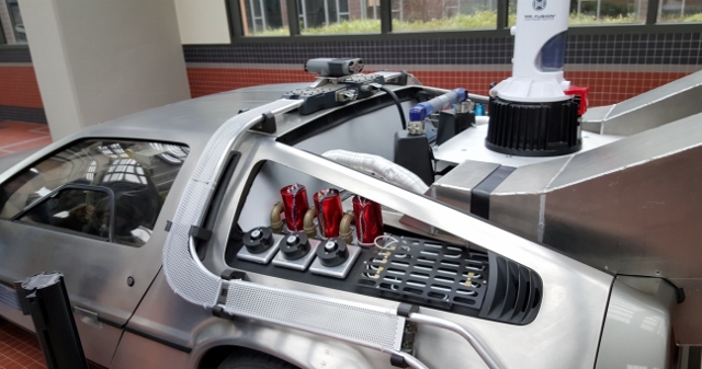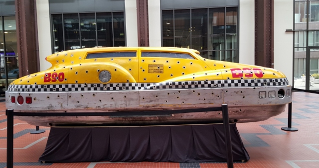 Dans l’immense nef de verre et d’acier de plus de 200 mètres de long et de 18 mètres de haut, trônent des véhicules originaux de films comme Le Cinquième Elément ou Lucy. On trouve également des répliques d’autres véhicules : la célèbre Delorean de Retour vers le futur, le van de L’Agence Tous risques, ou encore la moto et la jeep de Jurassic Park.