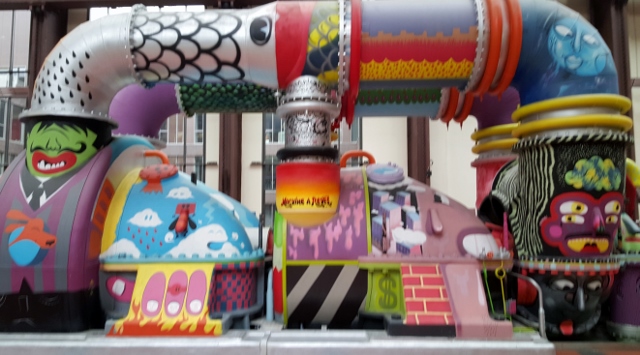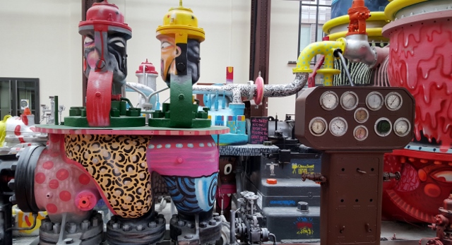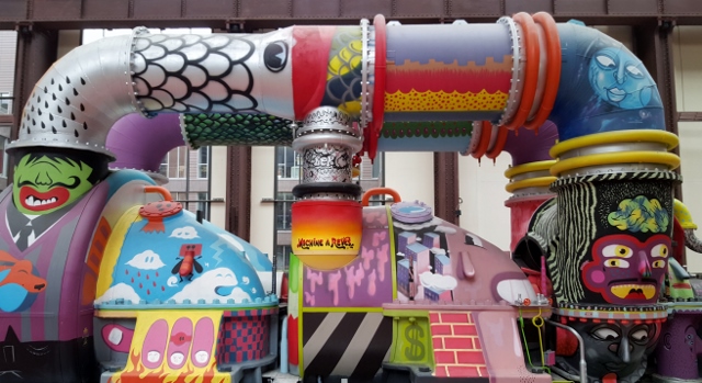 Vous ne pourrez pas non plus manquer La Machine à Rêves… Il s’agit de l’une des anciennes turbines électriques, située au centre de la nef. A la demande de Besson, elle a été entièrement décorée par le collectif de graffeurs Graff’art : Mister Pee, Kashink, Gregos, Konu, Gilbert P, Djalouz, Pesca, Caligr, JPM.