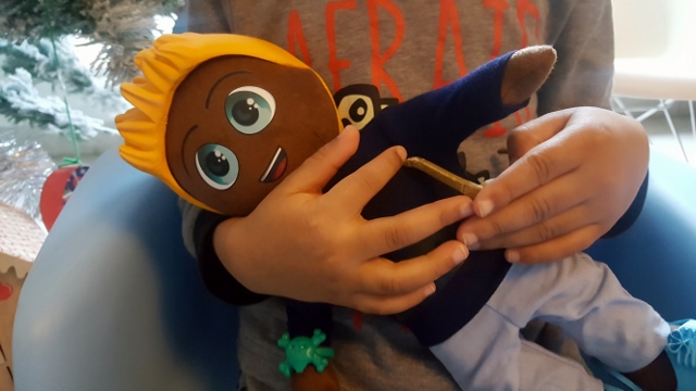 Une fois la commande passée, il me demandait au quotidien quand sa poupée allait arriver. Le jour tant attendu de la rencontre, c’était l’amour fou dès le premier regard : “Alors ça c’est la classe Maman ! Regarde comme je lui fais des bisous ! Prend-moi en photo avec ma poupée ! On va l’appeler William” ! Depuis il dort avec tous les soirs (en plus des doudous, ça commence à faire beaucoup). Un succès incroyable !