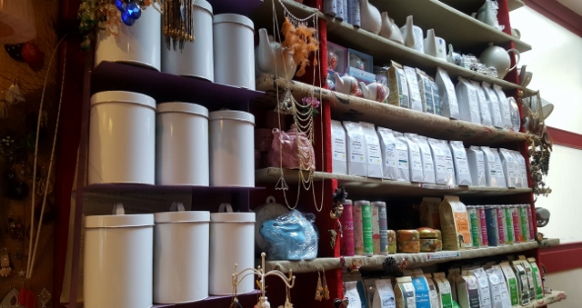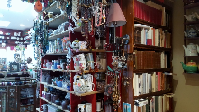En effet, si l’ambiance cosy de Plaisir d’équithé ne manquera pas de vous plaire (l’accueil est très chaleureux), vous serez certainement charmés par l’originalité des lieux. Véritable caverne d’Ali Baba, l’établissement est aussi une boutique, dont les produits recouvrent les murs et plafonds ! Thés, théières, bijoux, livres… Tout ce qui est exposé est à vendre.