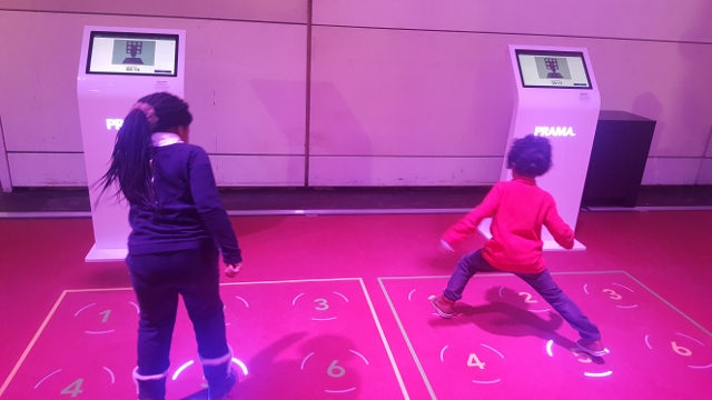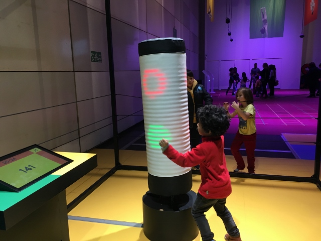 Nous avons parcouru l’exposition “Corps et Sport” juste après notre visite de “Microbiote“. Aussi, une fois leur tête bien pleine, Mon Lutin et ma nièce étaient particulièrement enclins à dépenser leur énergie, en vue de développer un corps bien fait. Et ils s’en sont donné à cœur joie, en s’essayant aux différents exercices proposés pour tester leur équilibre, leur endurance, leur précision ou encore leur coordination.