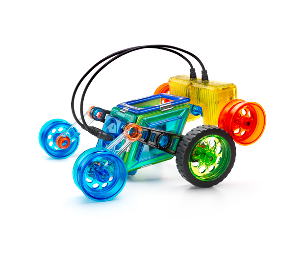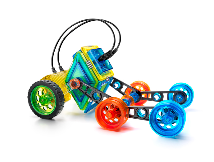 Mon Lutin est très fan des jeux de construction magnétiques Geosmart. Il possède deux boîtes qu’il ne cesse de monter, démonter, mélanger, remonter… Nous venons de découvrir un modèle d’un autre genre : le Flip Bot. Sa particularité ? On peut ajouter un moteur et télécommander son engin !