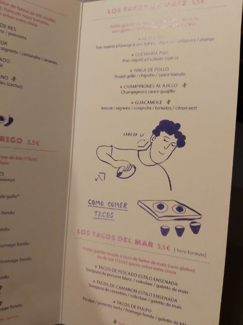 Chez ACÀ Pigalle, on est accueilli par un personnel mexicain (serveuses, chef). Cela m’a d’ailleurs donné l’occasion de revoir mon vocabulaire de base !