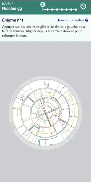 Dans un premier temps, le joueur fait face à son écran de smartphone où seul le plan circulaire du réseau de métros apparaît. Il doit alors faire tourner les différents axes circulaires afin de rétablir l’image du plan dans le bon ordre. L’image ainsi reconstruite laisse apparaître le message « À la croisée des lignes se trouve ton point de rencontre » accompagné d’une photo. L’aventure commence !
