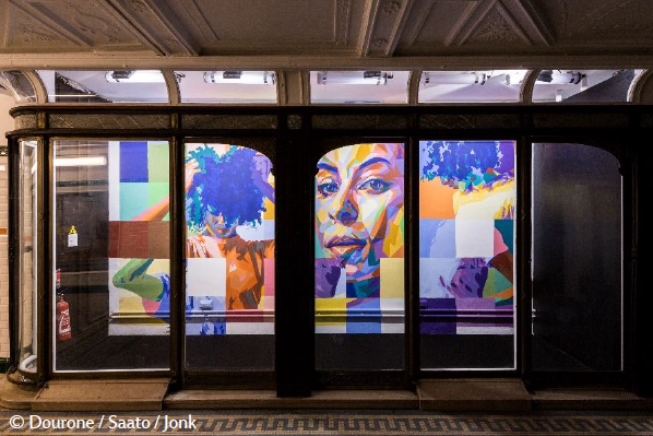 La station de métro Palais-Royal conserve une vraie curiosité : dans les années 1900, la toute première galerie marchande du métropolitain y a été créée. Cette galerie unique s’inspire du style Art Nouveau : motifs floraux, menuiseries et colonnettes en cuivre, panneaux de marbre, sol en mosaïques… Cette galerie, jusqu’alors fermée au grand public, ouvrira exceptionnellement ses portes durant toute la durée du jeu. Les participants y termineront leur parcours. Ils y découvriront une exposition d’art urbain, rassemblant le talent d’artistes éclectiques, unis par la couleur et la représentation figurative. Les passants pourront bien évidemment, eux aussi, en profiter.