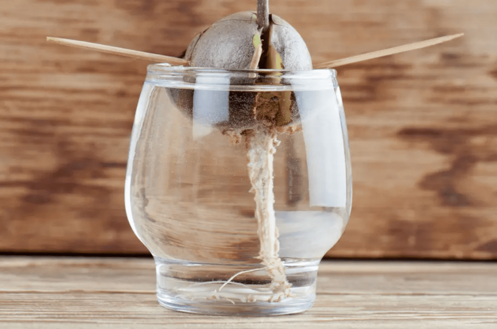 Matériel nécessaire : un noyau d’avocat, des cure-dents ou piques