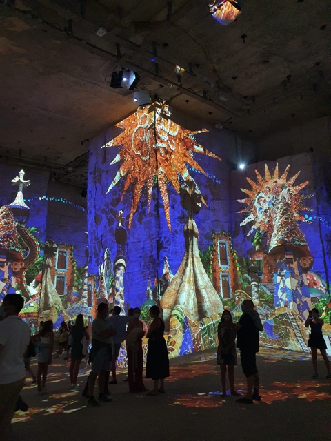 Aux Baux de Provence, nous avons un peu arpenté le village, mais surtout, nous avons visité Les Carrières de Lumières. Les Carrières de Lumières sont situées au pied de la cité des Baux-de-Provence, au coeur des Alpilles, dans un lieu chargé de mystère : le Val d’Enfer. C’est en ce lieu que la pierre de Baux date s’est formée au 2ème siècle avant JC. L’exploitation de la carrière date de 1800. Elles ferment en 1935, et devient un lieu culturel en 1959. Depuis son ouverture, les Carrières de Lumières accueillent des expositions numériques immersives consacrées à de grands noms de l’Histoire de l’Art. Nous avons deux expositions : Dalí, l’énigme sans fin et Gaudí, architecte de l’imaginaire. Tout simplement… Lumineux !