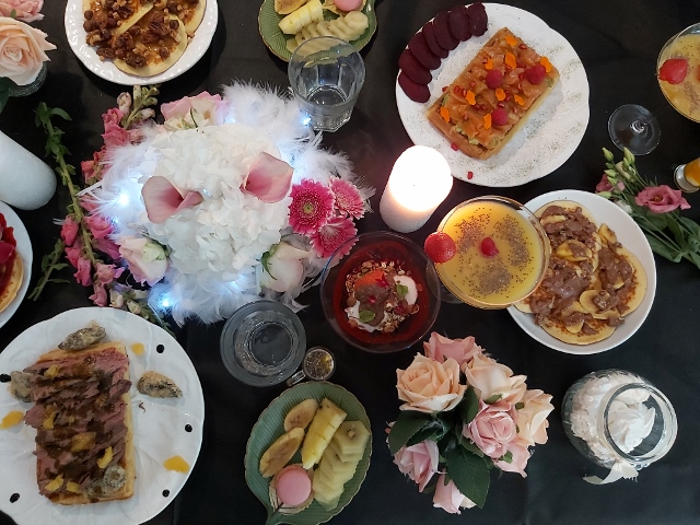 Quant à la conception du menu, Fatiha ne propose que du fait-maison. Smoothie, viennoiseries, pizza, pancakes aux fruits rouges, pancakes aux fruits secs caramel beurre salé, pancakes chocolat banane, tarte au citron, fromage blanc granola fraise et chocolat, salade de fruits, gaufre au saumon gravlax, gaufre au magret de canard… Chaque plat était succulent, et surtout original. Fatiha a l’art de proposer des classiques revisités, et toujours pour le meilleur. Elle avait prévu un menu pour trois personnes (compter à partir de 50€ par personne), mais les portions sont si généreuses, que nous en avons profité au dîner et le lendemain.