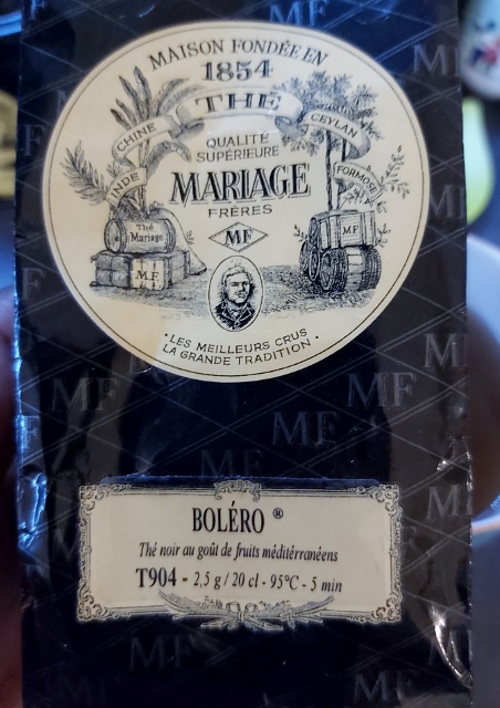 Quant au thé noir Boléro de Mariage Frères, c’est un mélanger de fruits de la Méditerranée : pêche blanche, abricot et figue.