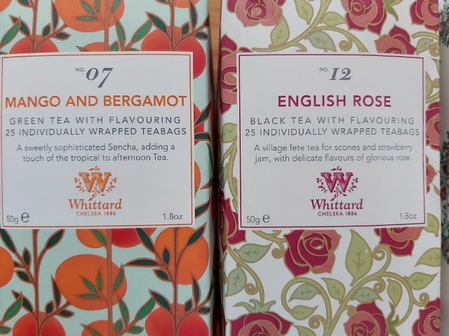 Si j’apprécie peu les infusions aux plantes, je suis une inconditionnelle du thé aux fleurs. Je me suis laissée séduire par deux assemblages Whittard, un Fauchon, et un Hampstead Tea. A vrai dire, j’ai d’abord craqué sur les packs avant de craquer pour les parfums !