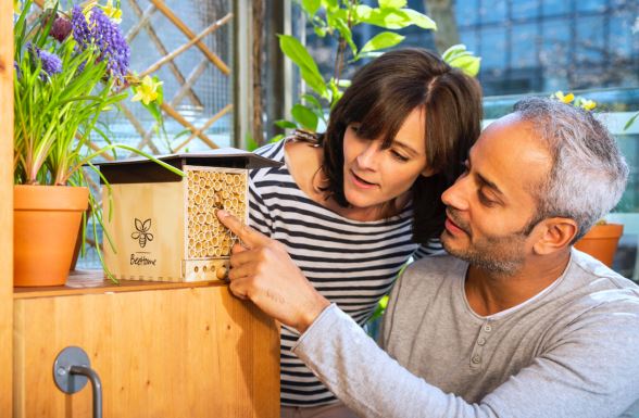 La maisonnette pour abeilles BeeHome se commande en ligne. Sa population d’abeilles maçonnes (en hibernation) est livrée durant le printemps.