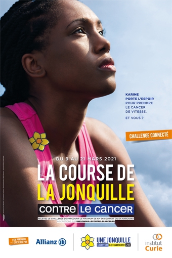 En 2021, la « Jonquille contre le Cancer » revient et mobilise le plus grand nombre afin de soutenir l’innovation médicale et la recherche contre le cancer. L’Institut Curie propose à ceux qui souhaitent se mobiliser de relever le challenge connecté de « La Course de la Jonquille Contre le Cancer ». Pour chaque kilomètre parcouru, 1€ est reversé à l’Institut Curie par Allianz France, partenaire majeur de cet évènement sportif et solidaire.