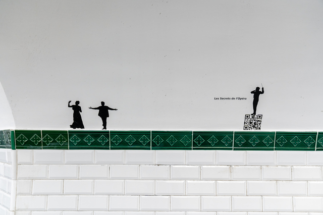Depuis quelques jours, les voyageurs qui empruntent les couloirs de la station de métro Opéra, assistent à un spectacle sur les murs. On y voit les silhouettes féminines et masculines, qui œuvrent dans le lieu mythique ayant donné son nom à la station. En effet, près de 1000 silhouettes inspirées par les métiers de l’Opéra national de Paris ont été apposées sur ses murs. Les Secrets de l’Opéra est un parcours visuel, qui s’accompagne d’une expérience sonore. Il nous plonge dans les coulisses de l’Opéra, via un dispositif de QR Code.