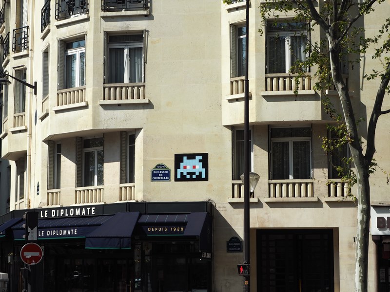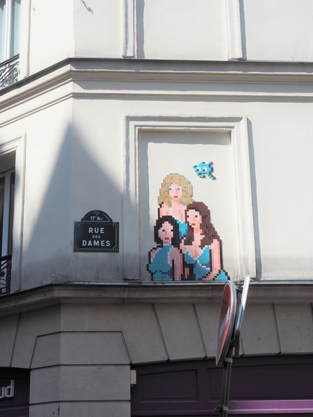Si j’étais totalement honnête, je ne parlerais pas d’invasion du 17ème arrondissement. En effet, sur les dizaines de Space Invader disséminés dans cet arrondissement, je n’en ai croisé que trois sur mon chemin. Les drôles de Dames de la rue des Dames, et deux autres spécimens boulevard de Courcelles.