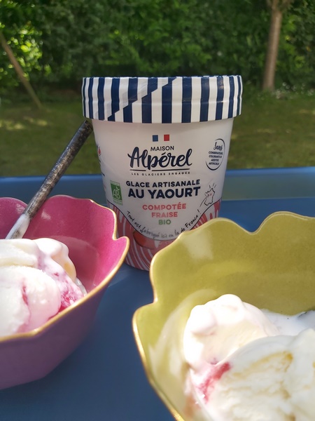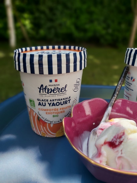 J’adore les yaourts glacés et je regrette d’en manger si rarement. En effet, il font cruellement défaut dans mon congélateur, car j’en trouve peu en grandes surfaces. Je les achète plutôt à emporter ou à déguster sur place, chez des glaciers spécialisés. Je suis donc ravie de ma récente découverte gourmande : les yaourts glacés et compotées bio de Maison Alpérel. Je ne connaissais pas du tout la Maison Alpérel, qui non seulement propose de délicieux yaourts, mais privilégie en plus les ingrédients, bio et français.
