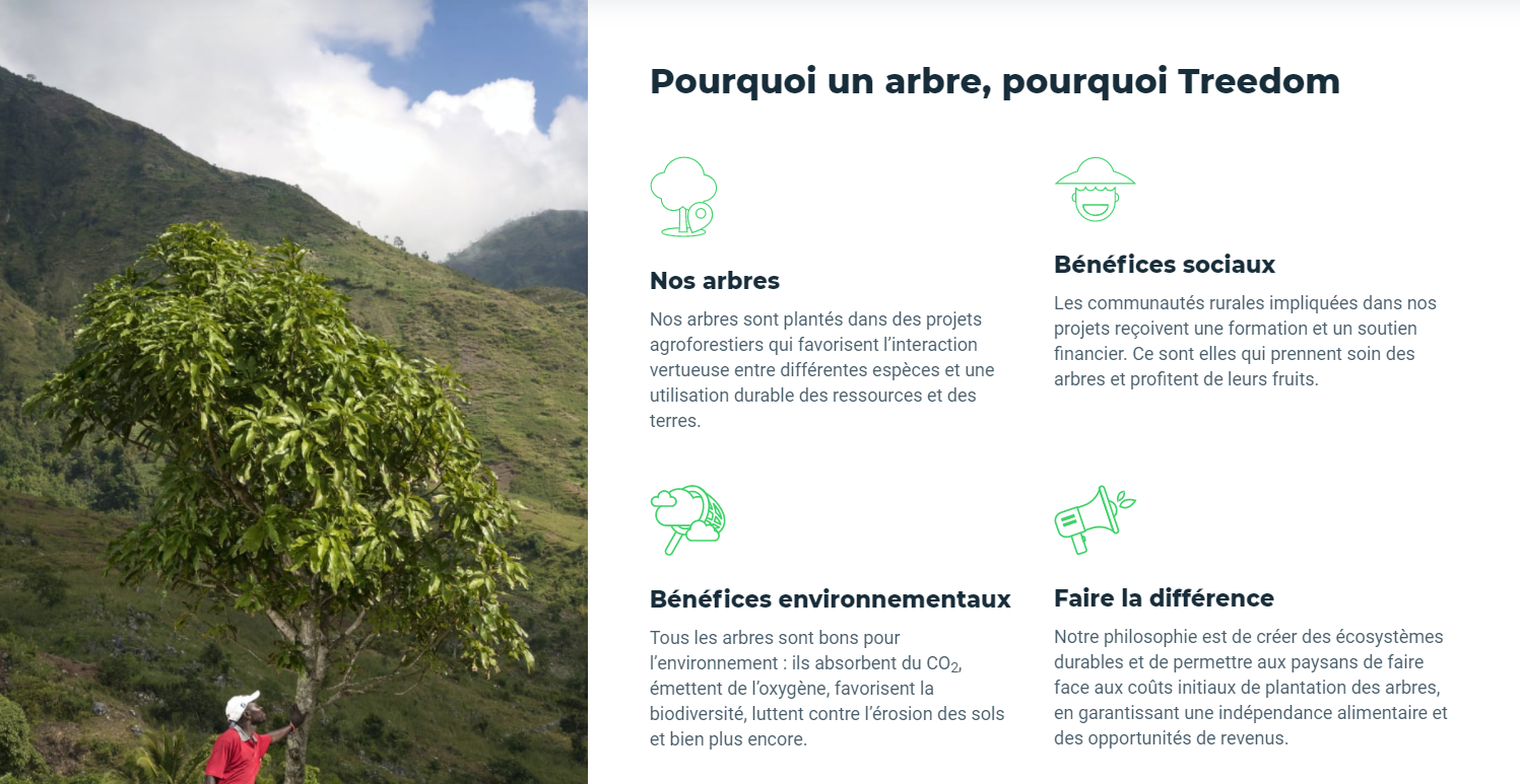Chaque arbre étant planté dans un système agroforestier, j’ai été séduite par cette manière simple, de contribuer à la protection de l’environnement (les arbres contribuent à la captation de carbone), tout en soutenant des petits agriculteurs et ONG partenaires de Treedom.