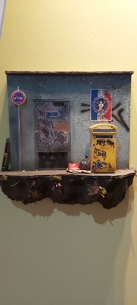 Jerémy Okyel est graffeur. Il crée des morceaux de rue et réunit dans ses créations ses trois passions : le graff, la miniature et la rue. Il utilise divers matériaux qu’il détourne de leur fonction.
