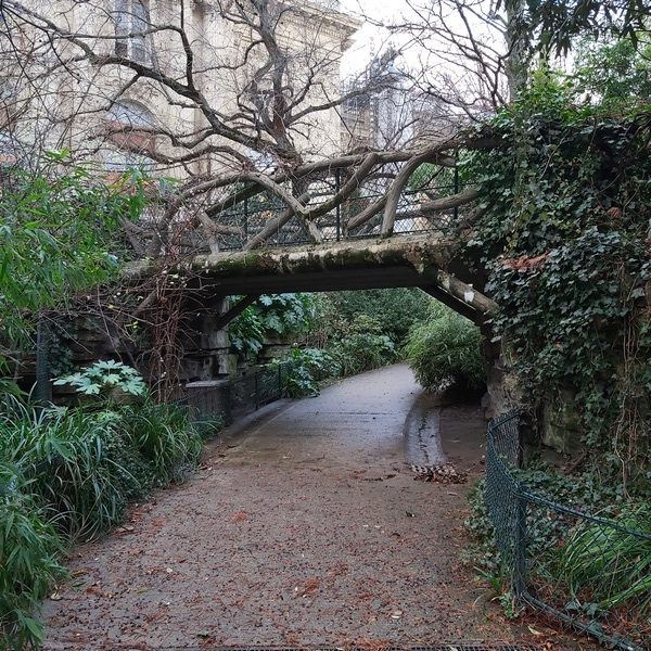 Le Jardin de la Nouvelle France forme l’un des carrés des Champs Elysées. Son histoire remonte à 1616, quand Marie de Médicis décide de créer une allée paysagère sur un terrain marécageux. En 1670, André Le Nôtre y dessine l’avenue des Champs Elysées. Jusqu’au début du 19ème siècle, seules six maisons y sont construites. L’agencement des arbres et des petits ponts de cet espace résume l’esprit du jardin haussmannien, interprétation mixte du jardin à la française et du j’ardin à l’anglaise. C’est vraiment curieux de tomber ce havre de verdure, à l’intersection de grandes avenues, au croisement de l’avenue Franklin Roosevelt et du cours la Reine.