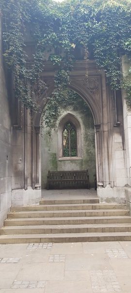 Nouvelle journée, nouvelles découvertes ! A commencer par St Dunstan in the East. Construite vers 1100, l’ancienne église, St Dunstan In The East a été en grande partie détruite pendant la Seconde Guerre mondiale et les ruines sont maintenant un jardin public. On se croirait dans un conte ou un film : c’est trop beau !