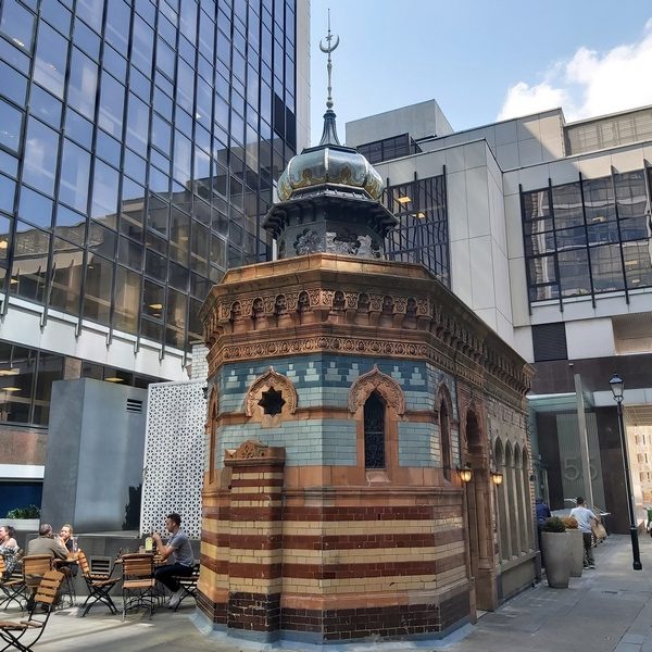Quelques trajets en bus plus plus tard, on découvrait la Victorian Bath House. Construite en 1895, c’est un ancien bain turc, où les Londoniens venaient se détendre. C’est désormais un bar à cocktails et un lieu de réception haut de gamme. L’architecture est d’autant plus surprenante que le bâtiment est entouré d’immeubles ultra modernes, dans une petite allée discrète.