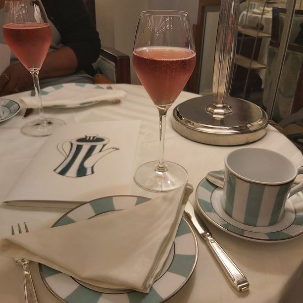 Comme à chaque séjour londonien, nous avons pour tradition de prendre un tea dans un hôtel de luxe. Notre choix s’est porté sur un Afternoon Tea Traditionnel dans le somptueux cadre Art Déco du Claridge Hotel. Nous étions aux anges, avec des thés divins, du champagne, et un menu qui suit fidèlement la combinaison traditionnelle du salé (sandwichs) et du du sucré (scones et pâtisseries). Voici le détail des sandwichs : saumon poché et fumé, coronation chicken sur pain complet, jambon tomates, œufs tomates basilique, concombre crème de citron, et un mini éclair au fromage de chère, tomates et basilique. Puis nous avons dégusté des scones (nature et aux raisins), accompagnés de crème caillée et de gelée Marco Polo. Et enfin des pâtisseries maison : fraisier, sablé au chocolat et praliné pistache, Saint honoré au caramel, Eton Mess à la framboise. J’ai déjà envie d’y retourner.