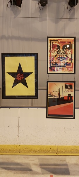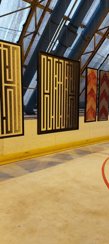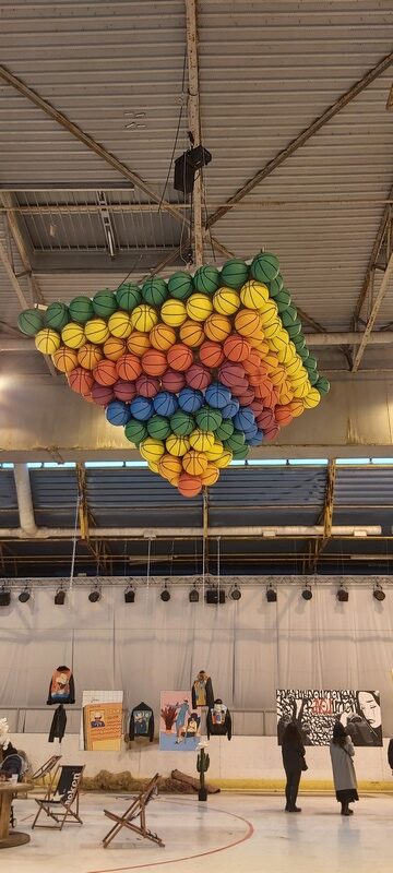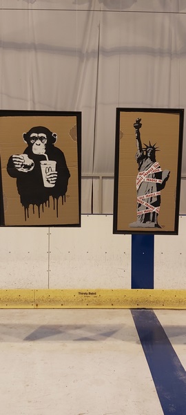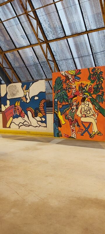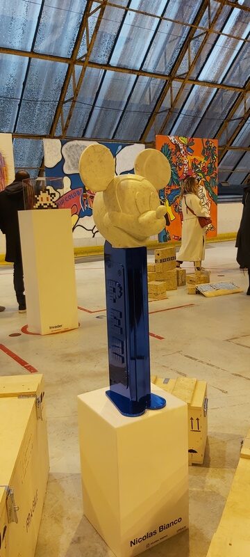 Je suis passée un nombre incalculable de fois devant la patinoire de Saint-Ouen, mais ne n’étais jamais entrée. Urbain de Paname me donnait enfin l’occasion de découvrir les lieux. J’ai trouvé l’espace vraiment intéressant, et relativement bien exploité pour mettre en scène l’exposition. On y trouve des œuvres au sol, aux murs, et même au plafond !