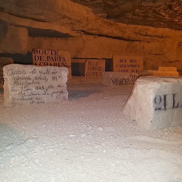 Dans le dédale de galeries, on trouve des puits, des nappes phréatiques, des fossiles, des symboles religieux, du calcaire… et des vestiges de tournages de films ! Notre guide, spéléologue passionné et membre de l’association, nous a raconté une foule de détails plus ou moins insolites. J’ai notamment appris que 30% des pierres à bâtir de Notre Dame de Paris proviennent de ces carrières.