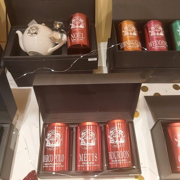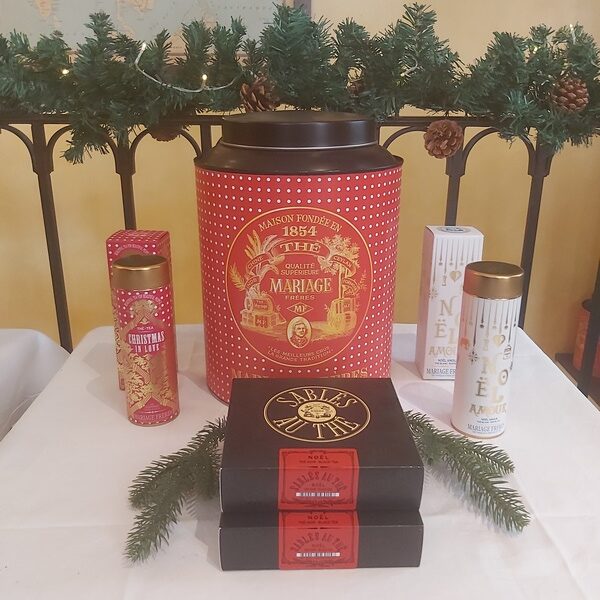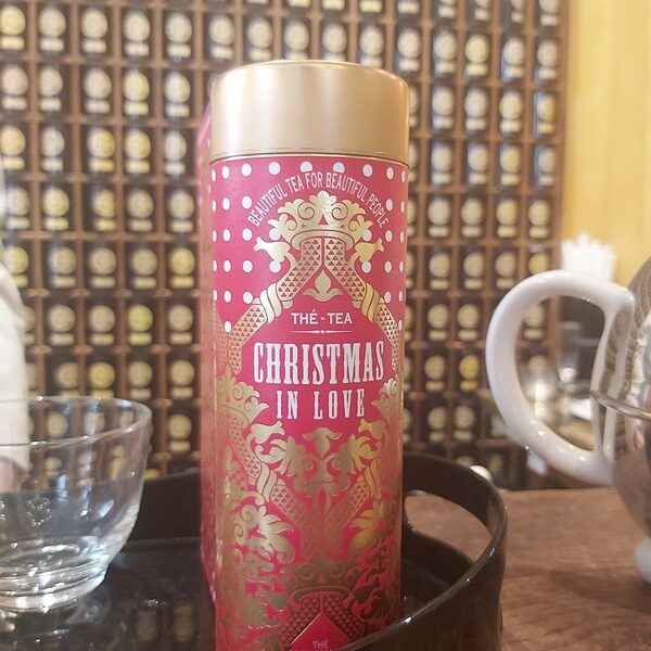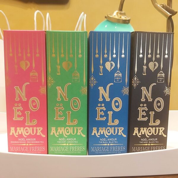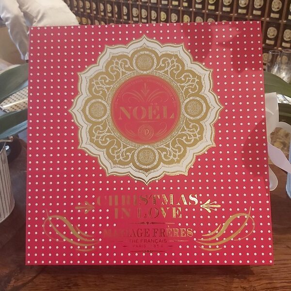 Mariage Frères a créé pour l’occasion un thé noir aux amandes de Noël, épices douces et fleurs d’hibiscus, présenté dans un flacon scintillant. Je l’ai immédiatement adopté !