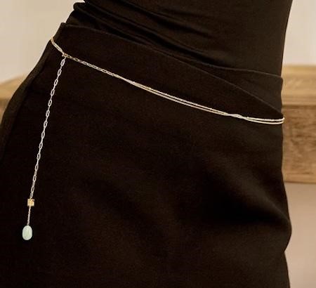 J’aime par exemple porter la chaîne de ventre, ou “bijou de taille”, avec un croc top pour sculpter la silhouette. Vous pouvez ainsi affiner votre taille et accentuer vos courbes féminines grâce à une chaîne de ventre. En créant un contraste visuel, elle donne l’illusion d’une taille plus fine et de hanches plus marquées. Un atout séduction à porter sur la peau ou par-dessus vos vêtements !