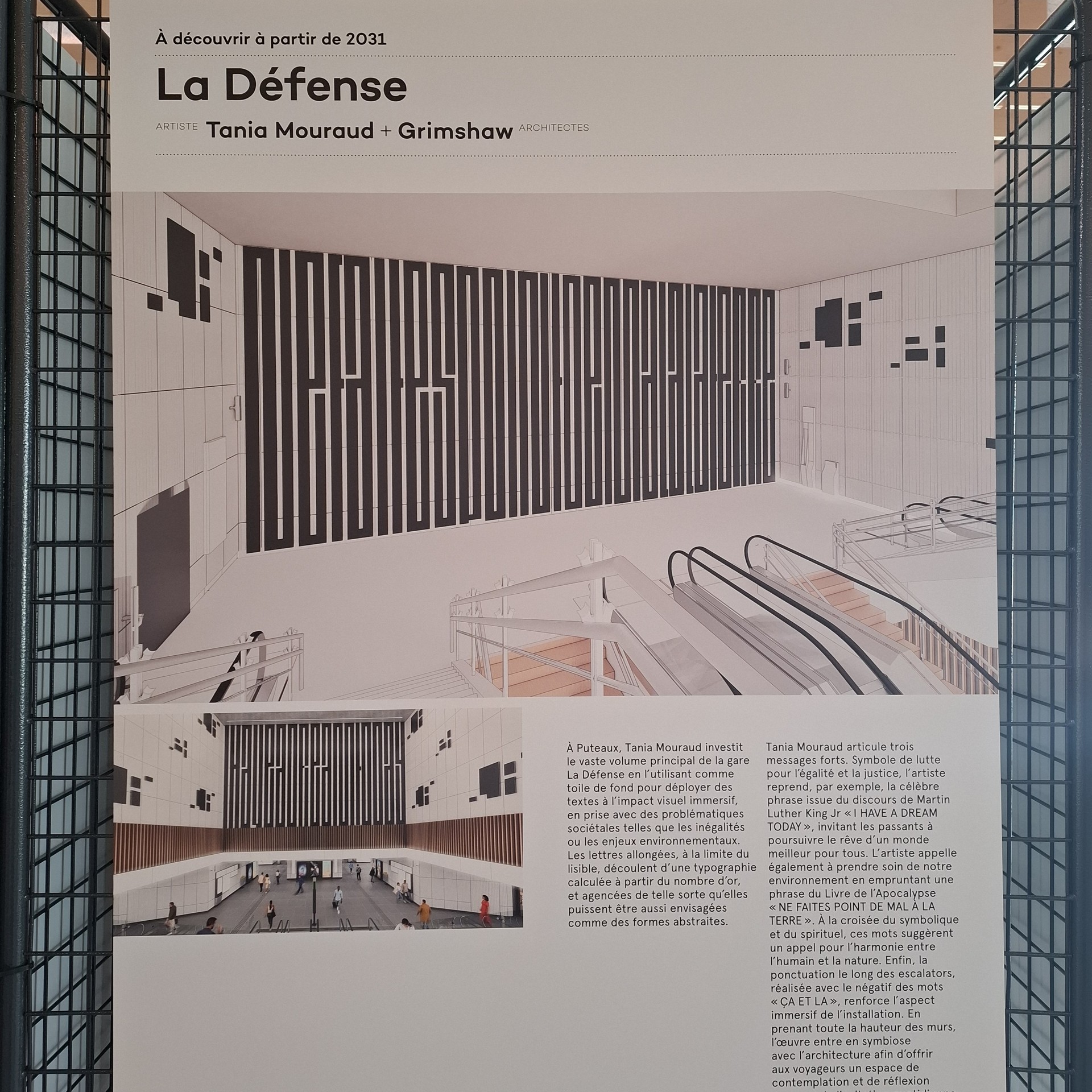 Sur place, on découvre des posters qui illustrent certaines des créations des 70 œuvres d’art (artistes et architectes ont travaillé en binômes).