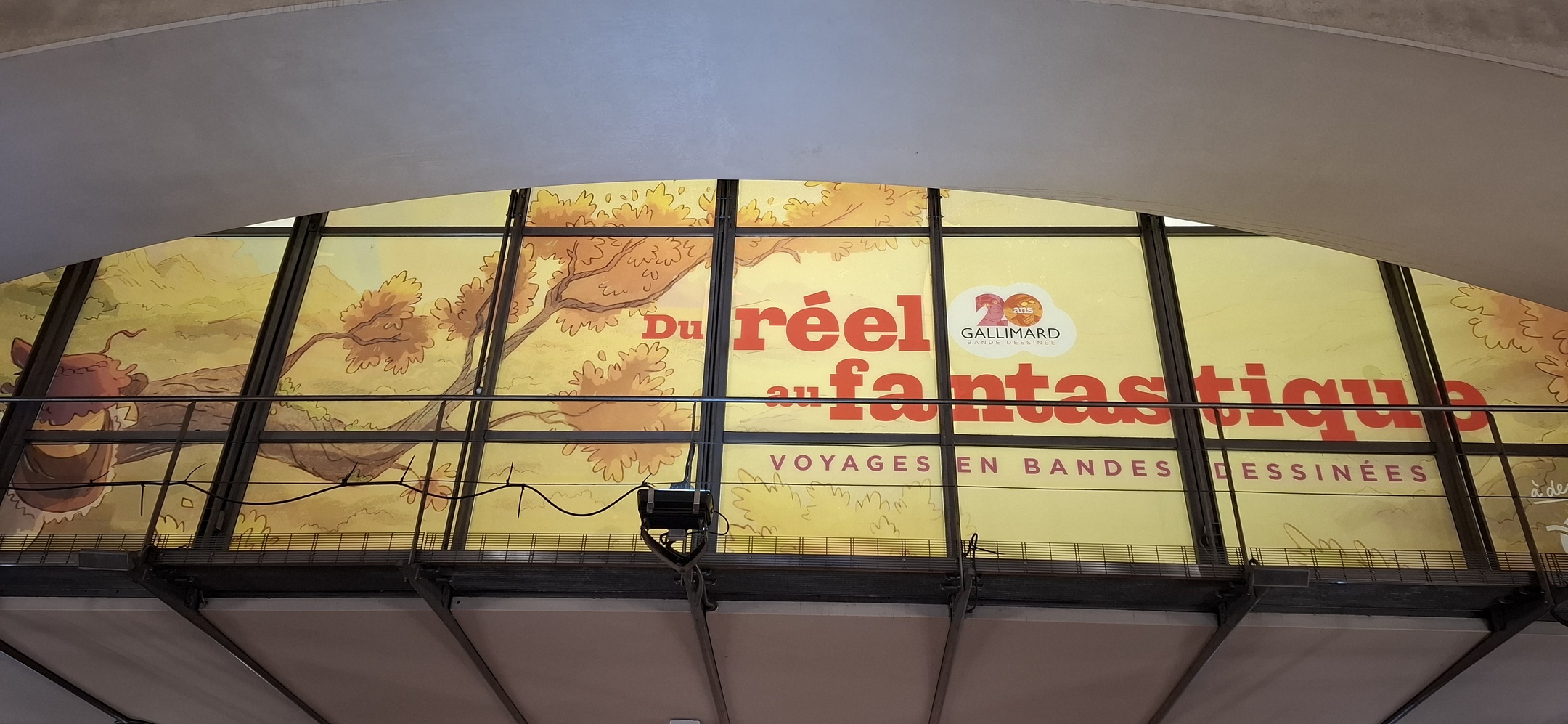 En descendant à la station Bibliothèque François Mitterrand sur la Ligne 14 du métro parisien, je suis tombée par hasard sur l’exposition « Du réel au fantastique, voyages en bandes dessinées ». La RATP propose cette exposition gratuite à l’occasion des 20 ans de Gallimard Bande Dessinée, et c’est une jolie parenthèse culturelle pour tous les voyageurs.