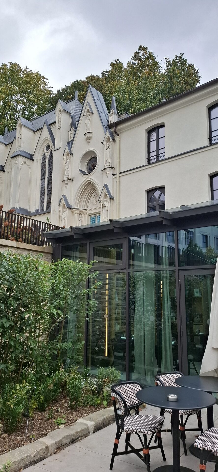 C’est lors d’un déjeuner professionnel que j’ai franchi la grille du Domaine de la Reine Margot, à Issy-les-Moulineaux. À peine entrée, j’ai eu la sensation de quitter la ville. Un mur ancien, presque une muraille, rappelle l’histoire du lieu. Quelques pas plus loin, le jardin se dévoile : une chapelle, des statues à caractère religieux, une bâtisse élégante, et même une vue sur la Tour Eiffel. L’effet wahou est immédiat.